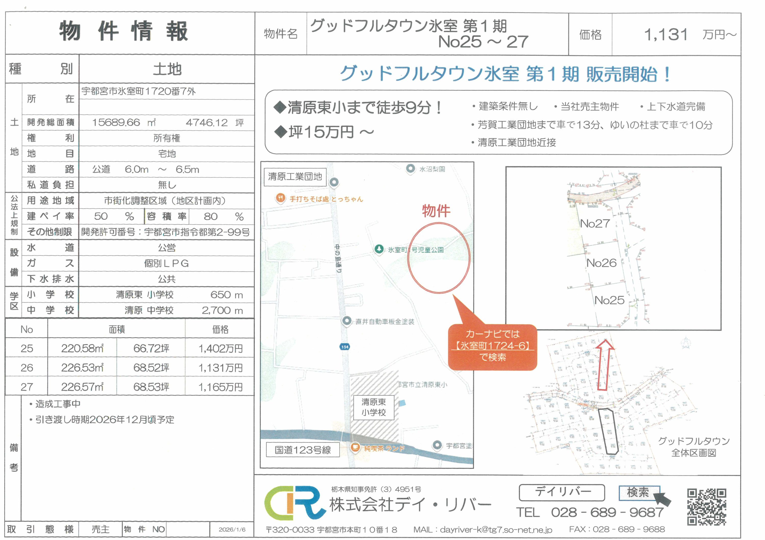 | 物件名 | グッドフルタウン氷室 No25~27 | 住所 | 宇都宮市氷室町1720番7 |