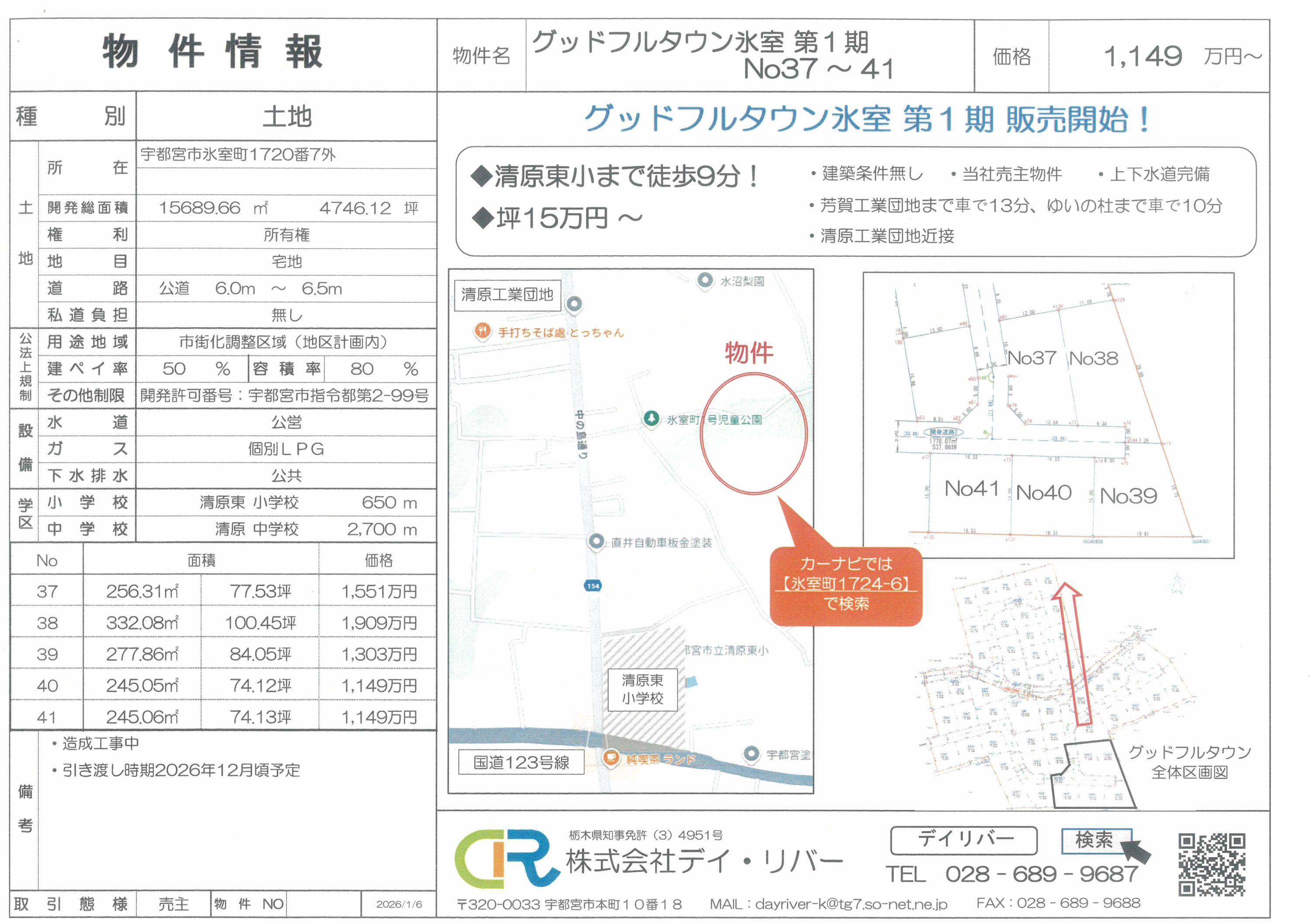 | 物件名 | グッドフルタウン氷室 No37~41 | 住所 | 宇都宮市氷室町1720番7 |