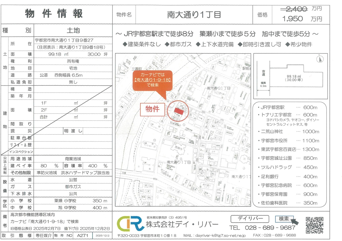 土地面積 99.18㎡(30.00坪) 価格 1,950万円